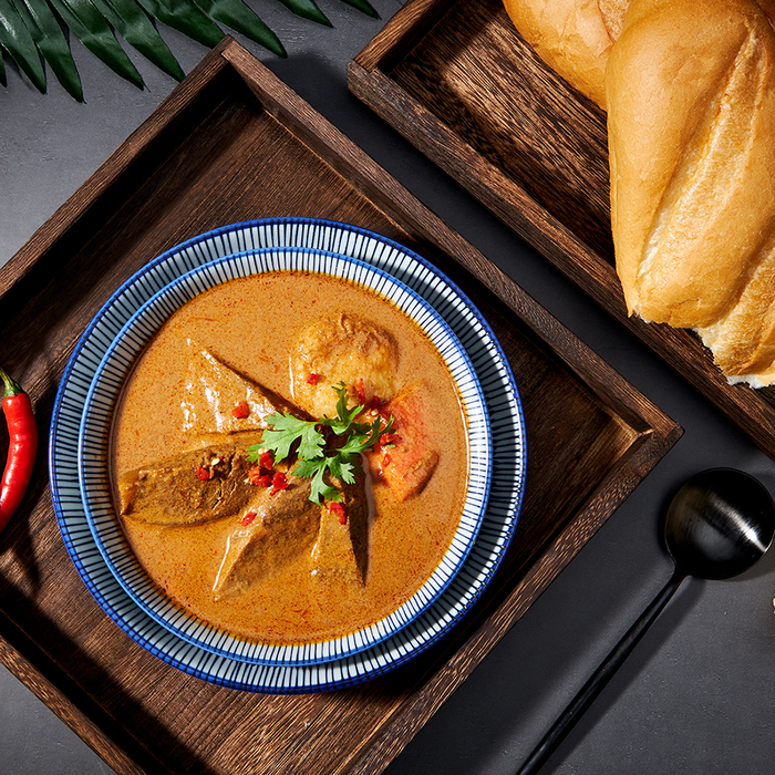 越南順化自古就是皇室的所在地。這道順化椰汁牛肉為宮廷大廚親傳,不僅咖哩的製作用料嚴謹且費時費工。牛肉軟嫩且風味細緻奶香濃郁,喜愛南洋料理的朋友一定要嘗試這道跟越式法國麵包超級絕配的精緻美味咖哩。搭配白飯也超級下飯哦!。